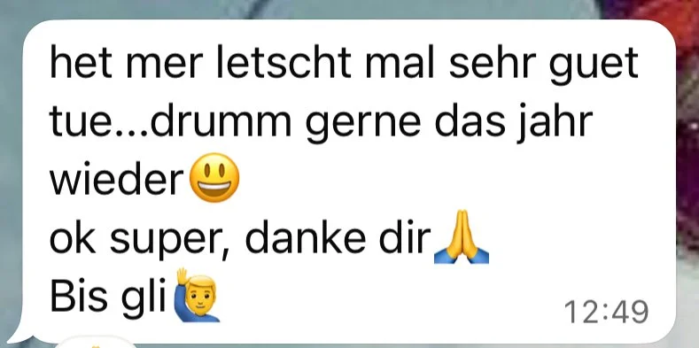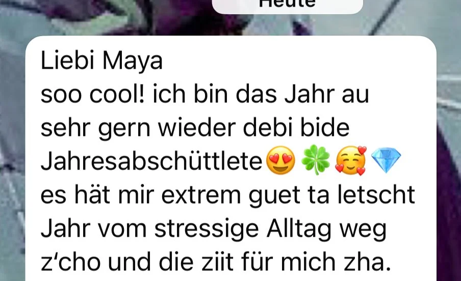 Bezahlung im Vorfeld via TWINT (076 302 70 55) oder e-Banking.